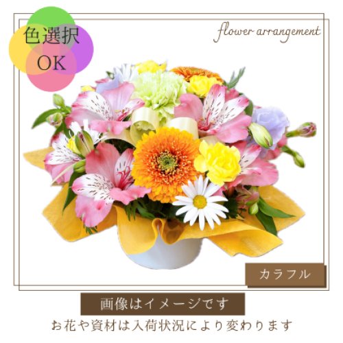 季節や入荷状況によって、その時の旬のお花でお作りいたしますので、